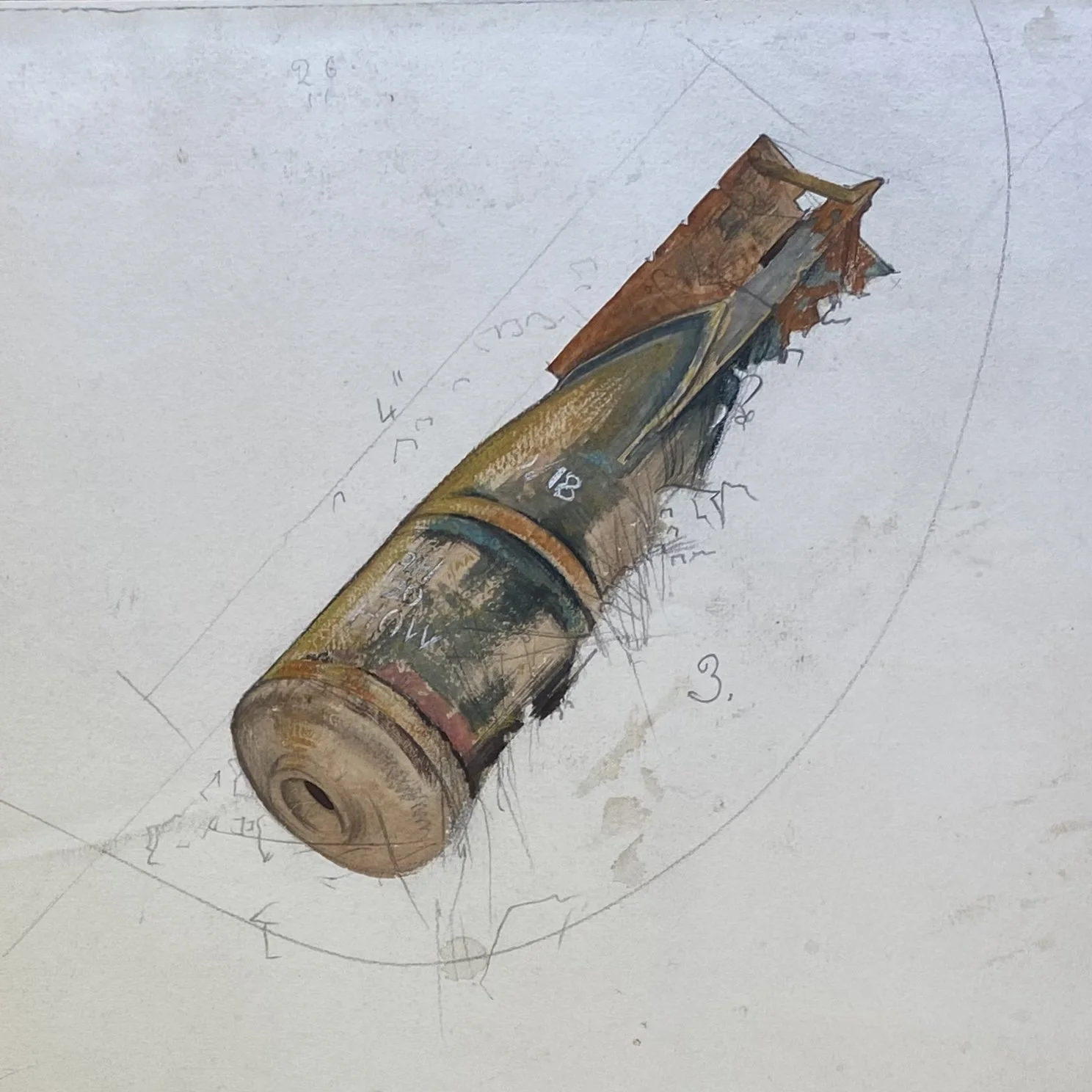 Bomb Study, the Somme, circa 1918. Pencil and Watercolour on paper 35.5 × 51.5.